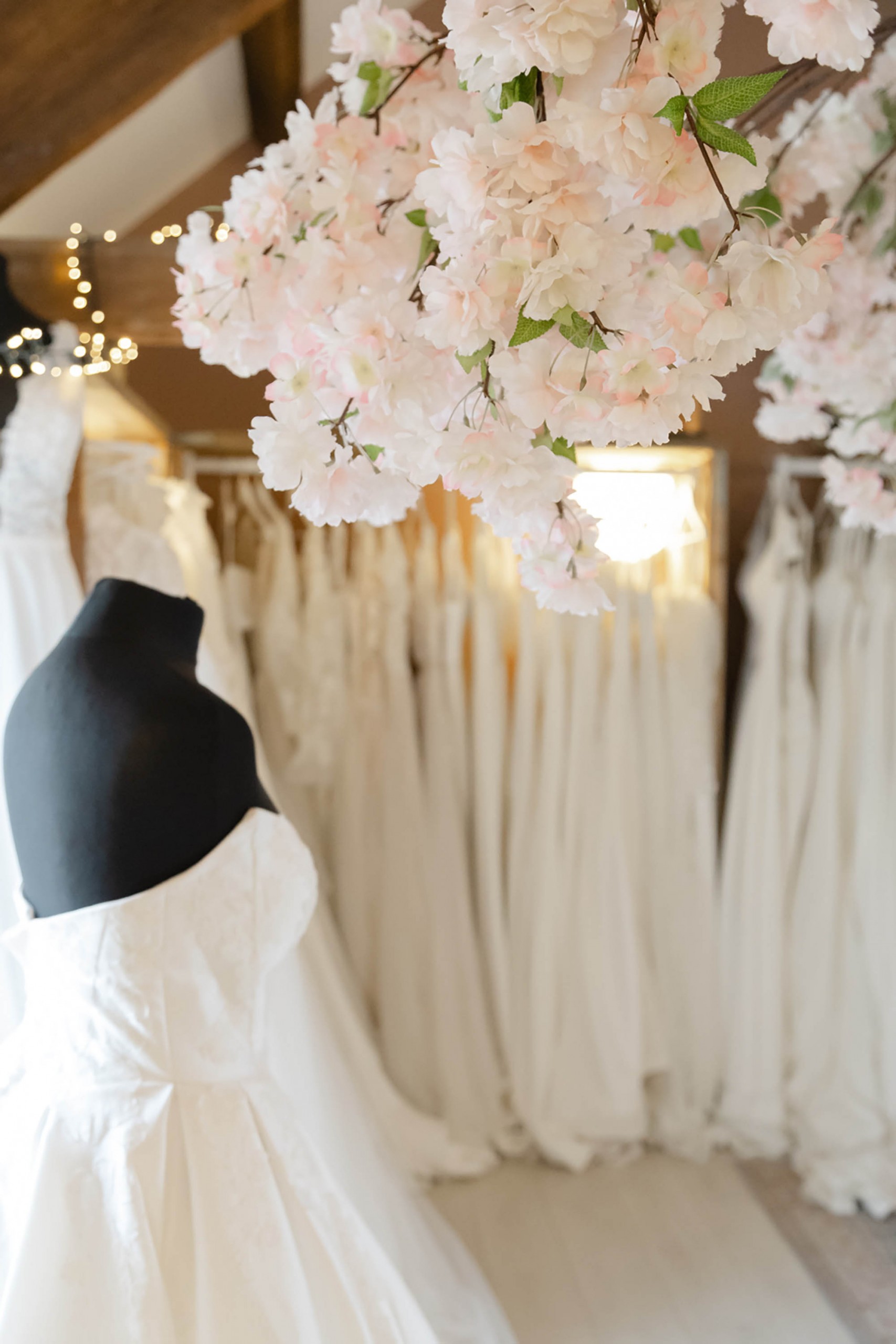 Set in the heart of the stunning Yorkshire countryside, your home for the next two hours is a converted barn, softly lit with twinkling lights, blossom trees, and filled with a carefully curated collection of wedding gowns in every style you can imagine. From the moment you arrive, everything is designed to help you feel calm, comfortable, and free to enjoy every moment.